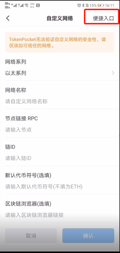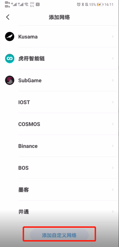 2.进入添加网络,下滑到最低端,点击“添加自定义网络