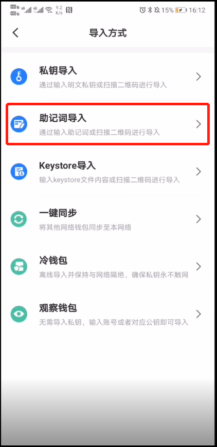 7.使用助记词导入8. 输入自己的Avalanche钱包助记词(复制粘贴即可)——输入密码——导入钱包