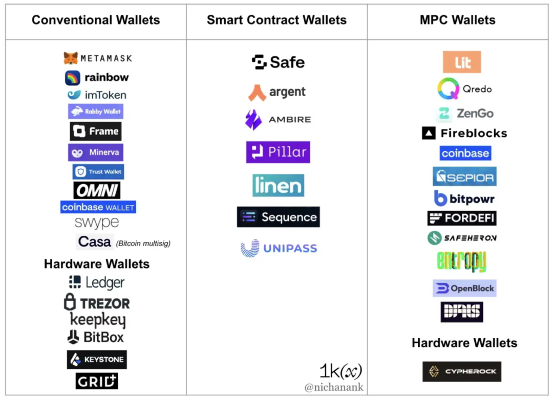 目前主流的两种解决方案取得了重大进展,即无助记词的加密钱包:智能合约钱包(包括多重签名钱包)和多方计算(MPC)钱包。