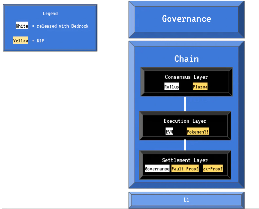 OP Stack 的每一层都由定义好的 API 描述,由该层的模块填充。从理论上讲,OP Stack 能构建任何基于其 API 的模块化区块链。