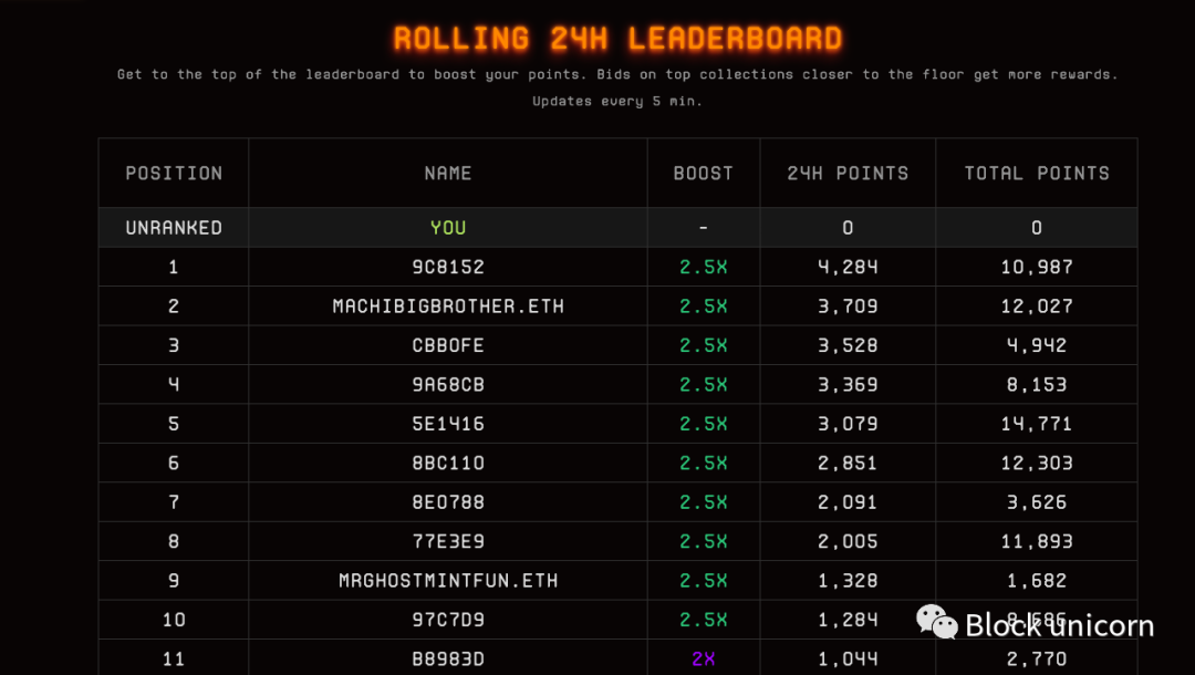 最后,在整个过程中,Blur为用户保留了一个排行榜,按积分排名。这创造了游戏化的竞争和社交证明,显示了其他用户的活动。