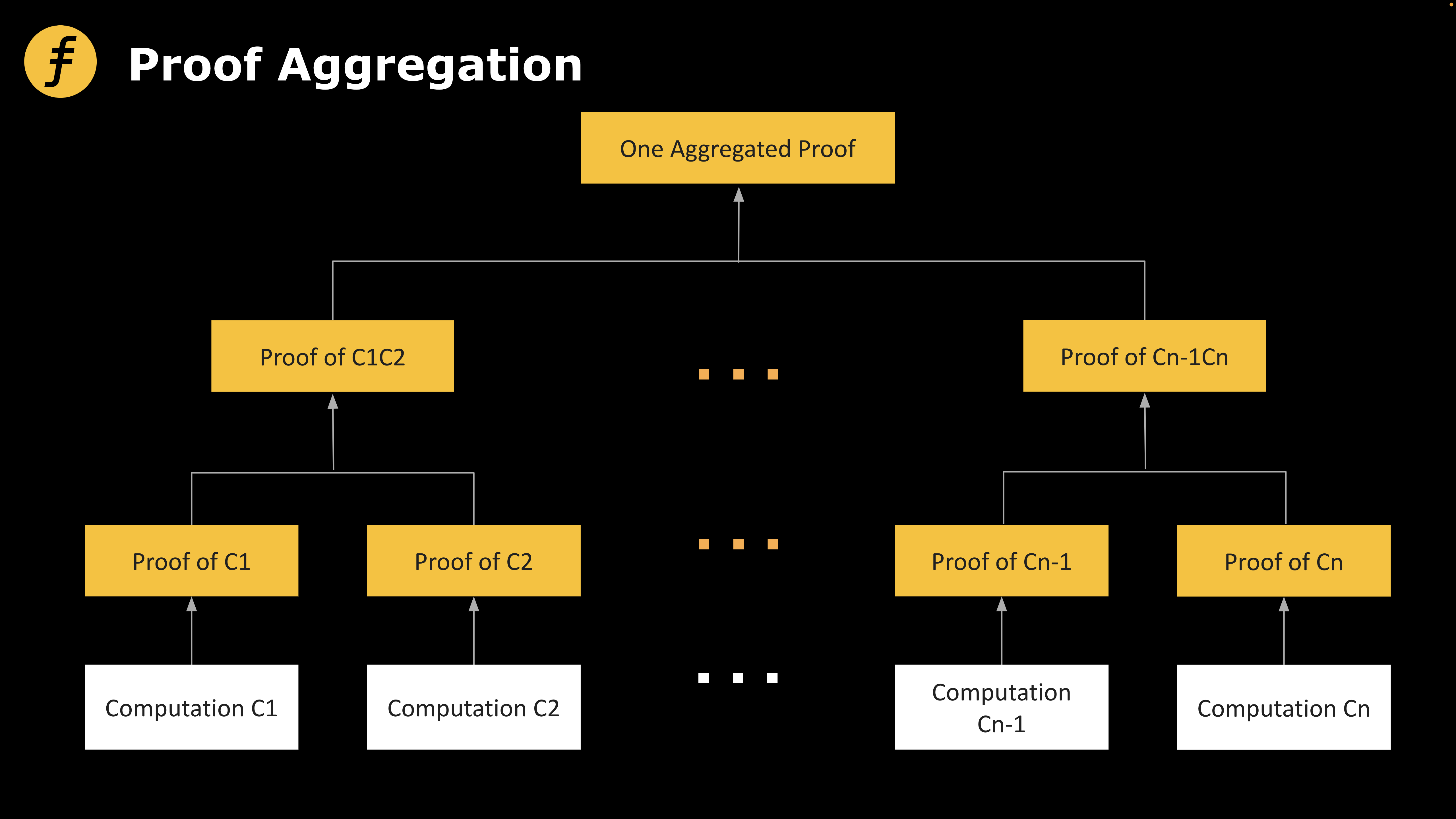 上面例子里把7张照片直接放入一个信封就是直观意义上的证明聚合,这在实际情况中对应的是将不同证明连接在一起并依次线性验证,即先验证第一个证明,再验证第二个证明以及随后的证明。问题是这种做法既不会改变证明的大小,也不会改变证明的时间,与一个一个去证明并验证的效果一样。如果要实现对数级别的空间压缩,那就要使用下面提到的递归证明(Proof Recursion)。