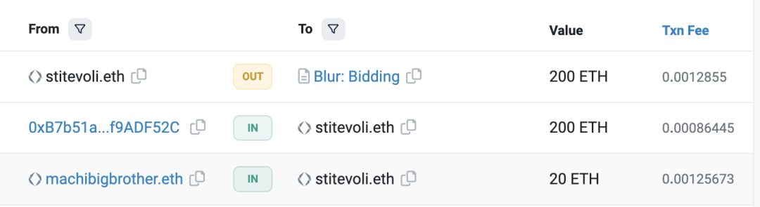 我看了下,最近徐老师忙着刷blur,不亦乐乎。下午麻吉给她转了20ETH,她自己向blur bid池里转了200ETH。现在blur排行榜麻吉第一名,徐静蕾最好成绩进过前200,不得不说,玩空投,以后连徐静蕾都打不过…