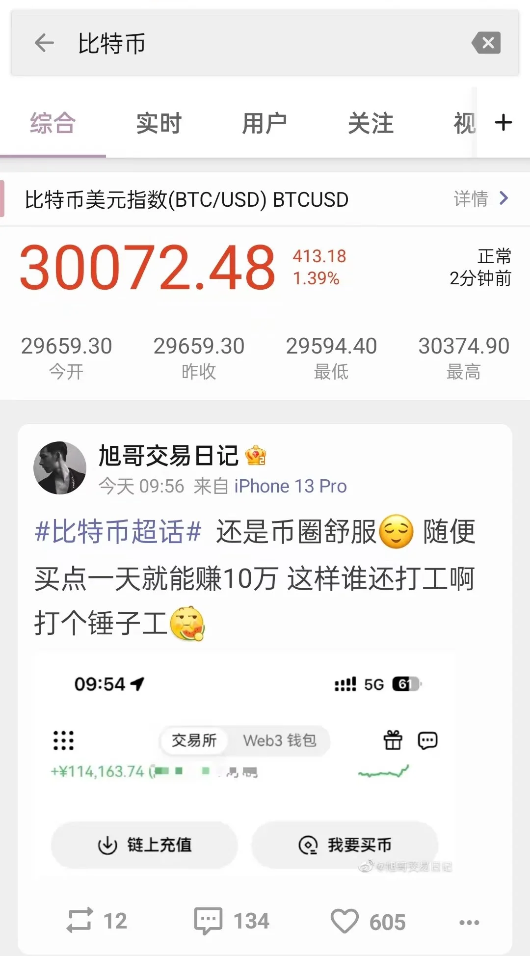 今日早些时候,“比特币”词条也登上了微博的热搜榜,同时,在微博搜索比特币后,同样可以查看比特币的实时价格。
