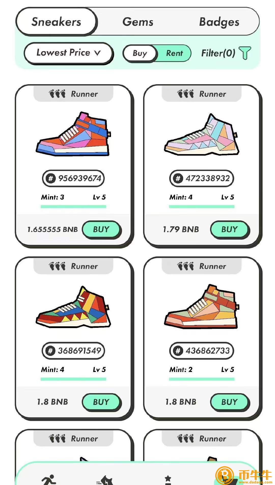 北京商报今日记者多方了解到,STEPN兴起于2021年底,定位为基于区块链技术的游戏App,主打“边跑边赚钱”的理念。玩家需要先持有STEPN发行的NFT球鞋,然后在现实世界中通过户外行走和跑步来赚取代币。