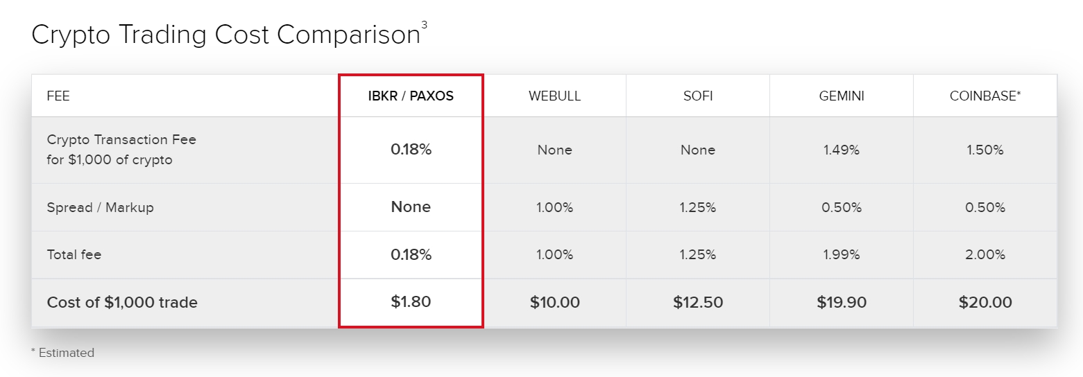 盈透证券在其官方网站上比较了各平台之间的交易成本。在每1000美元的交易中,盈透证券的交易成本最低,仅为1.8美元,比小米科技公司微牛证券好(Webull)10美元,美国券商SoFi的12.5美元,加密货币交易所Gemini的19.9美元、Coinbase20美元低很多。