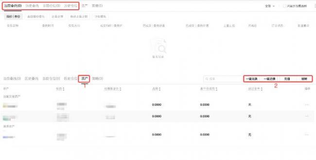 【买入/卖出】页面下方,可以查看【当前委托/仓位/资产】等信息。点击【全部】按钮,可以查看您的【当前委托】(即当前没有成交的挂单)、 【历史委托】(即已经成交和已撤销没成交的委托单子),委托单里可以详细看到您的委托时间,币对和成交量等信息。